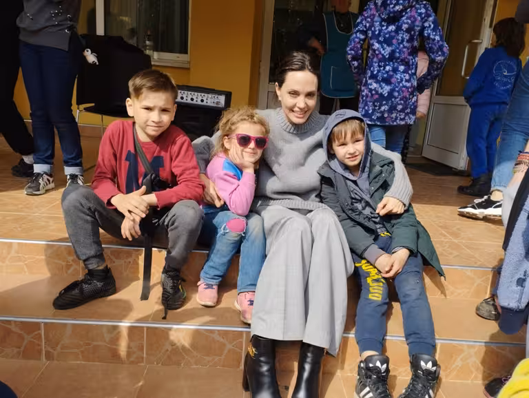 Анджеліна відвідала дітей, які зараз у Львівській області, які були поранені на початку цього місяця в результаті авіаудару російської авіації по залізничному вокзалі в Краматорську на сході України.