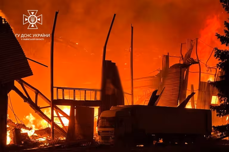 Атака «шахедів»: у Львові пожежу ліквідовують 125 рятувальників (ФОТО, ВІДЕО)