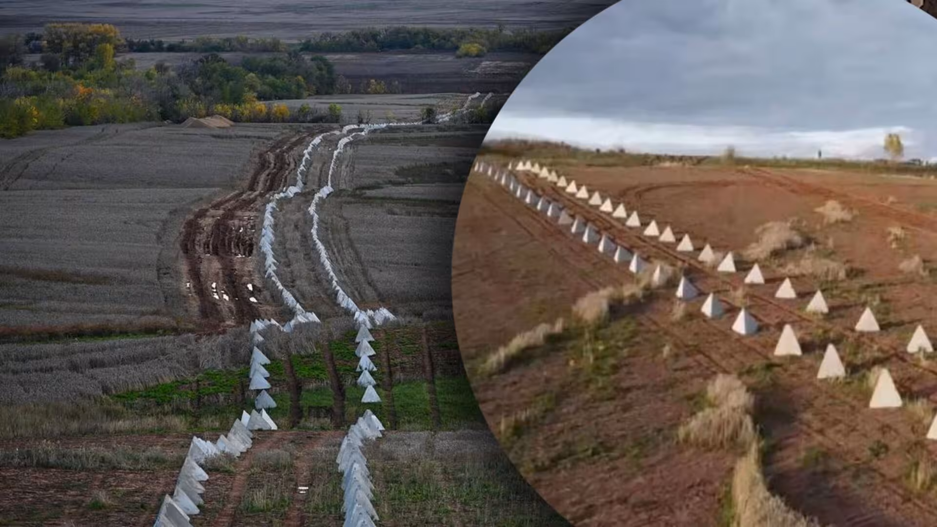 За даними моніторингової групи, лінія протитанкових укріплень побудована в полі уздовж траси М8 в напрямку України.