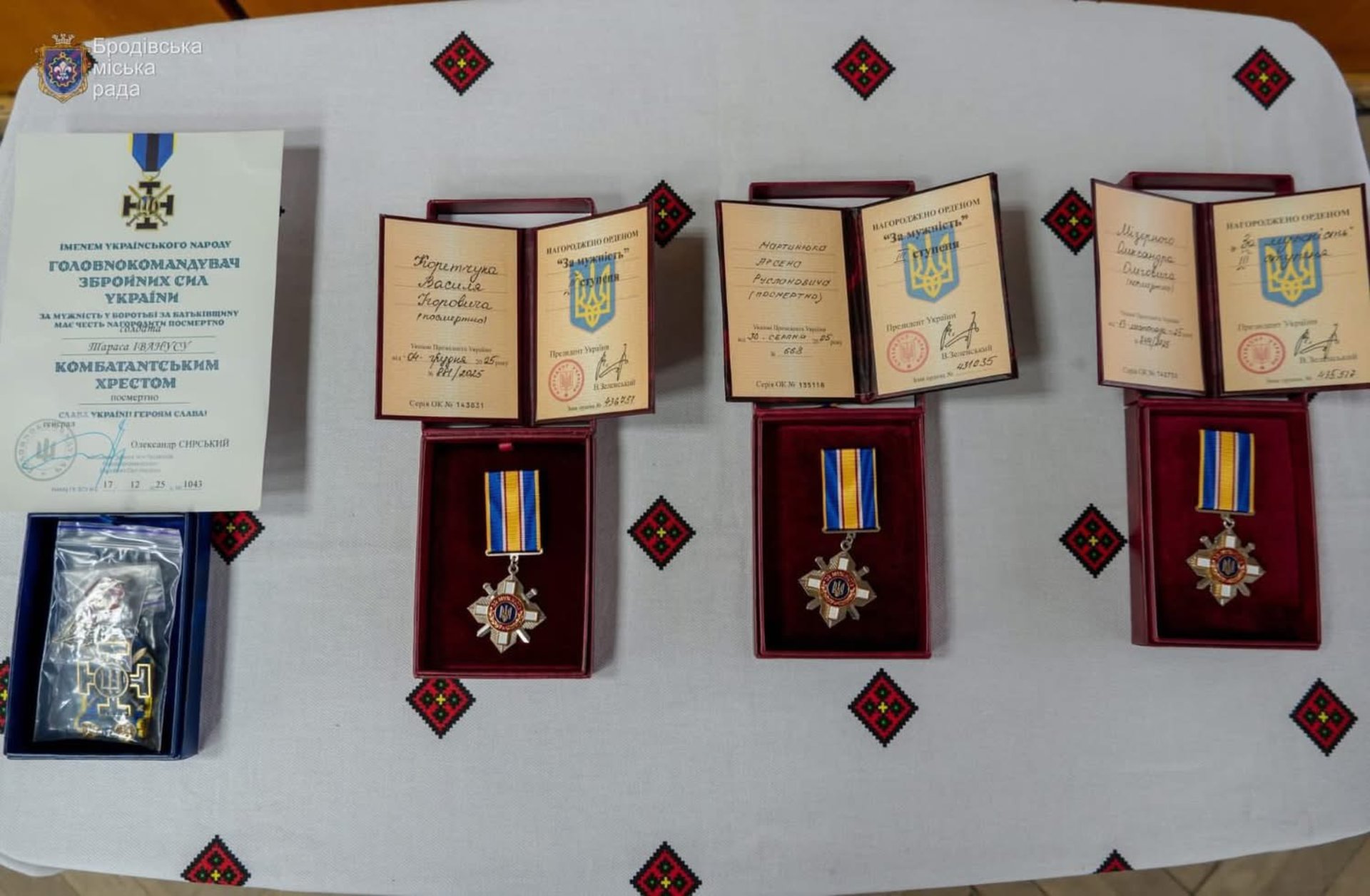 Також почесним нагрудним знаком «Комбатантський хрест» посмертно відзначили Тараса Івануса. 32-річний захисник загинув 12 серпня 2025 року під час виконання бойового завдання на Харківському напрямку.