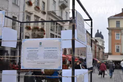 На площі Ринок розмістили більше 40 дипломів студентів з усієї України, що загинули у боротьбі за незалежність нашої країни.