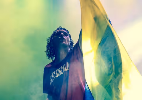 Як повідомляє, благодійна організація b42kon.help саме в цій футболці Кузьма запалював на фестивалі «Файне місто» в 2014 році, коли в нашу країну прийшла війна.