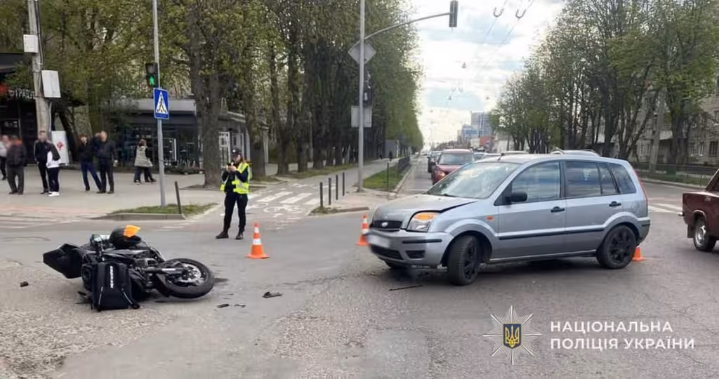 Друга дорожньо-транспортна пригода сталася о 16:00 у Львові. На перехресті вулиць Городоцької та Самбірської не розминулися автомобіль Ford Fusion та мотоцикл Kawasaki Z1000. Внаслідок удару 31-річний водій двоколісного отримав тілесні ушкодження та був доставлений до медичного закладу.