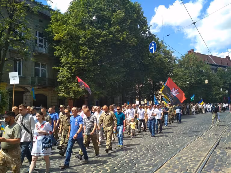 Героям Слава! У Львові проходить урочиста хода біля пам'ятника Степанові Бандері (ВІДЕО, ФОТО)