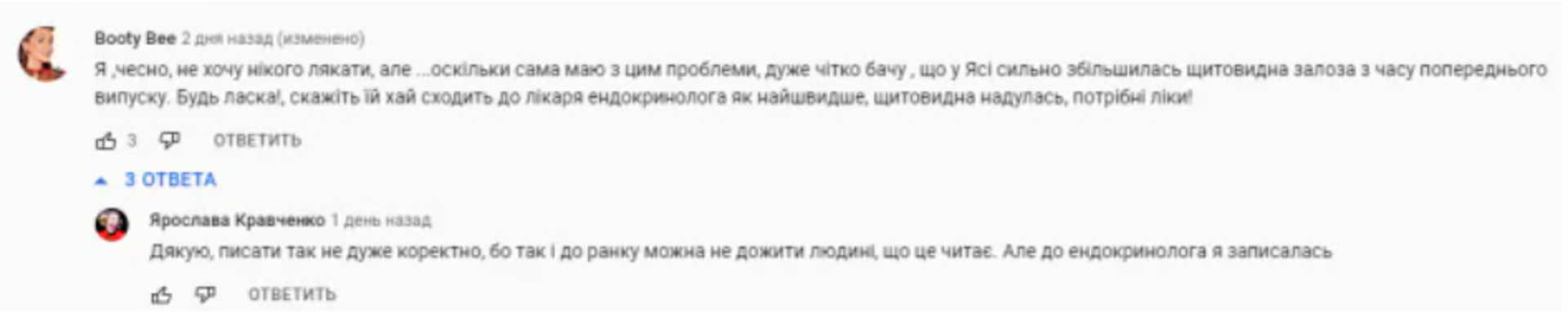 Під відео на «YouTube» після випуску шоу глядачка написала Кравченко коментар про те, що «у Ясі сильно збільшилася щитовидна залоза з моменту попереднього випуску».
