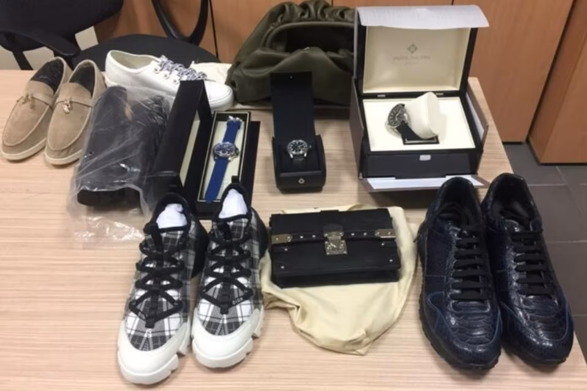 Однак, митники оглянули багаж і виявили годинники, взуття та сумки відомих світових брендів — «Dior», «Louis Vuitton», «Loro Piana», «Bottega Veneta», «Patek Philippe». За попередніми даними, вартість багажу сягає більше 620 тисяч гривень, що суттєво перевищує неоподатковувану норму переміщення через митний кордон України.