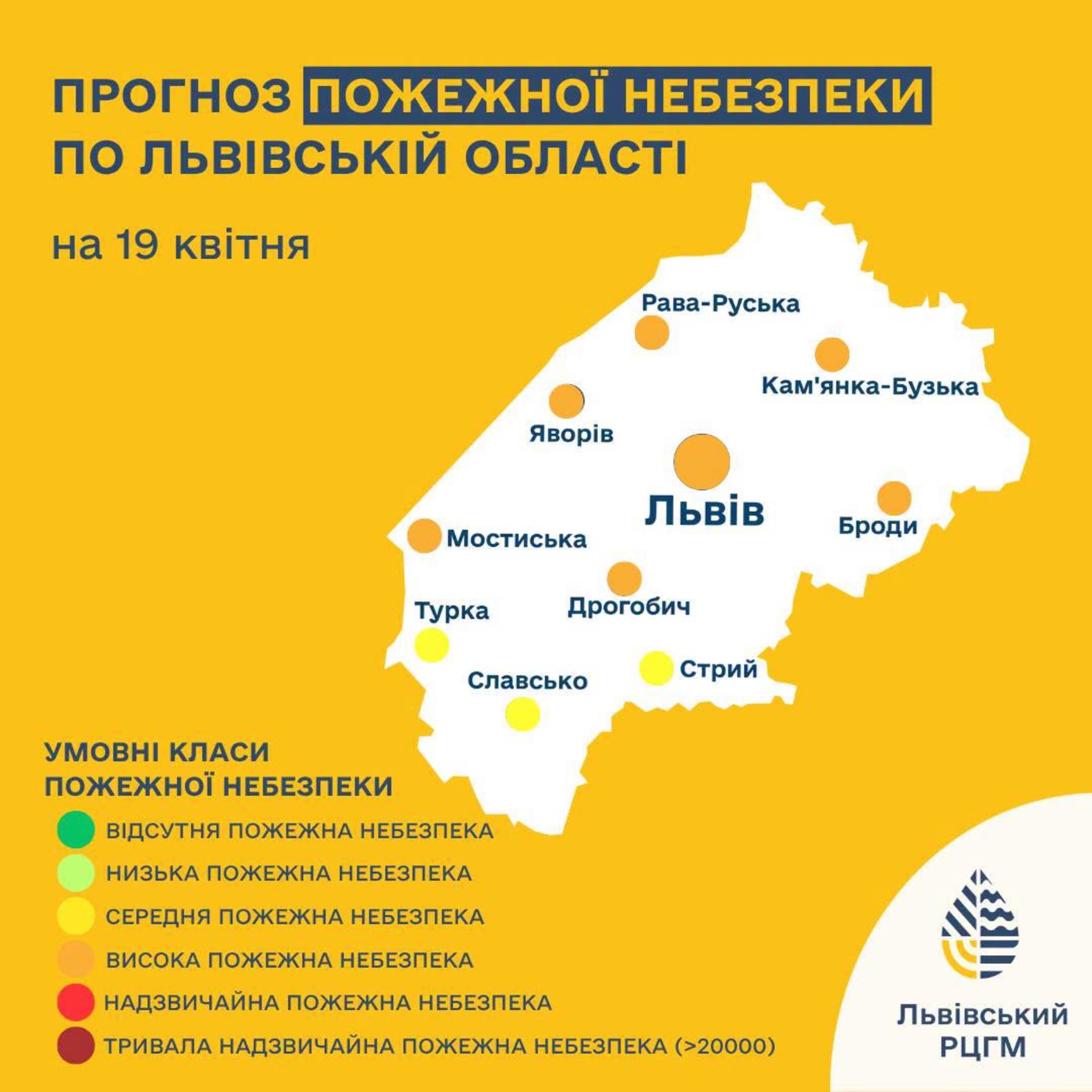 19 квітня висока (4-й клас), по півдню території середня (3-й клас) пожежна небезпека.