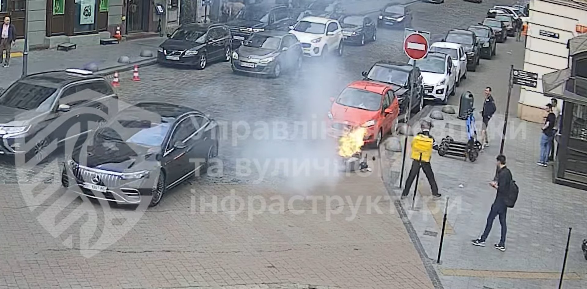 Камери міста зафіксували момент займання скутера у центрі Львова (ВІДЕО)