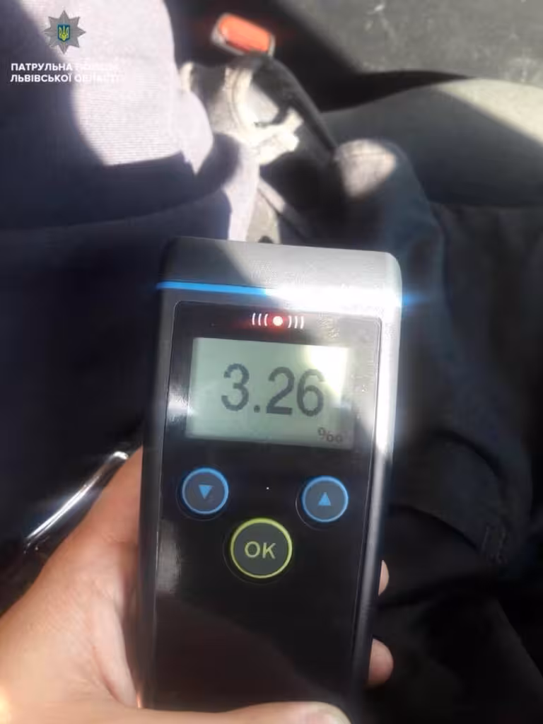 У присутності двох свідків чоловік пройшов перевірку на приладі Drager. Результат - 3,26 проміле. Це більш ніж в 16 разів перевищує допустиму норму.