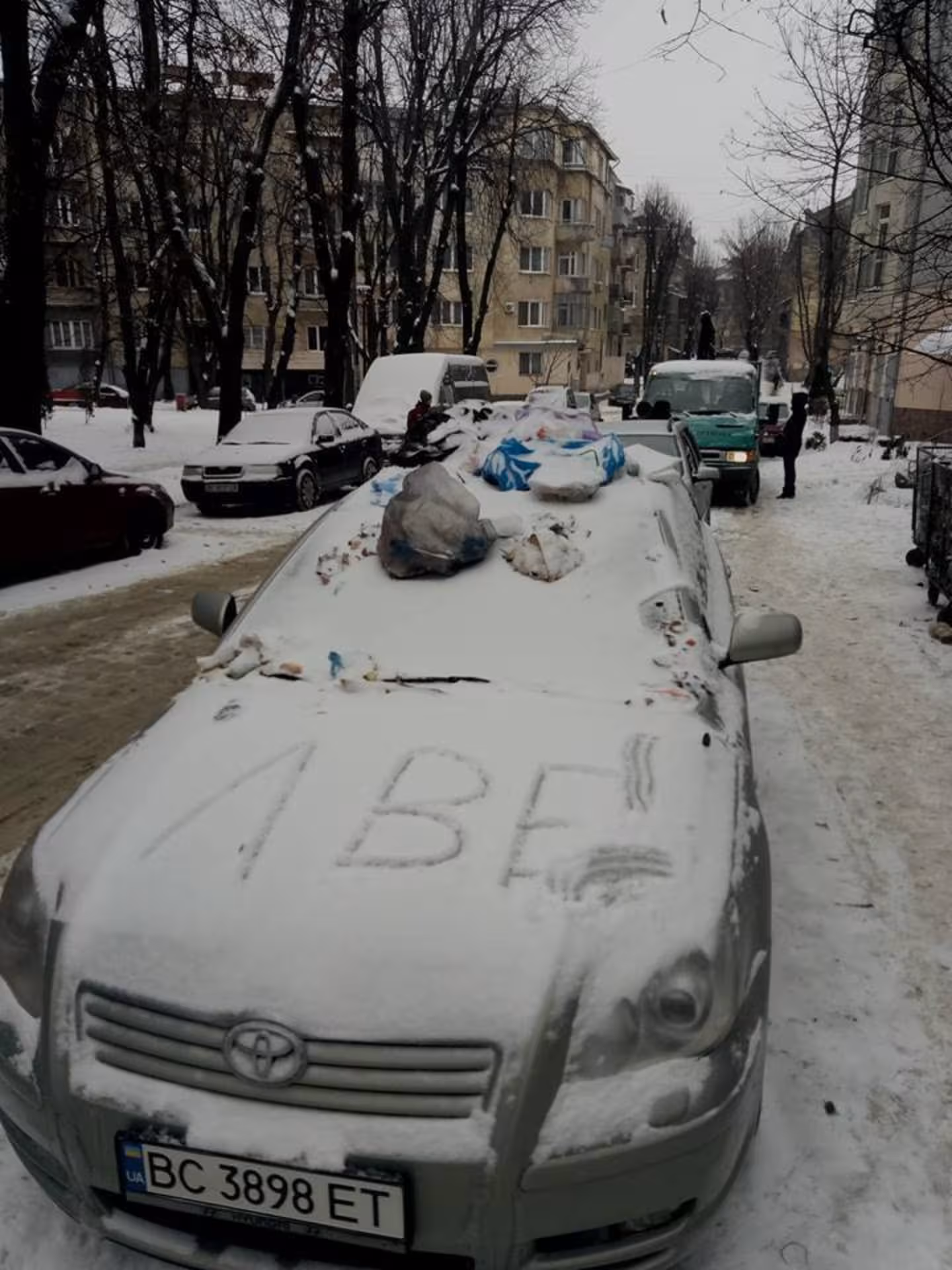 Цікаво, що на капоті автівки невідомі лишили слово «АVE». Додамо, що у Львові існує компанія з аналогічною назвою, яка вивозить із сміста ТПВ.