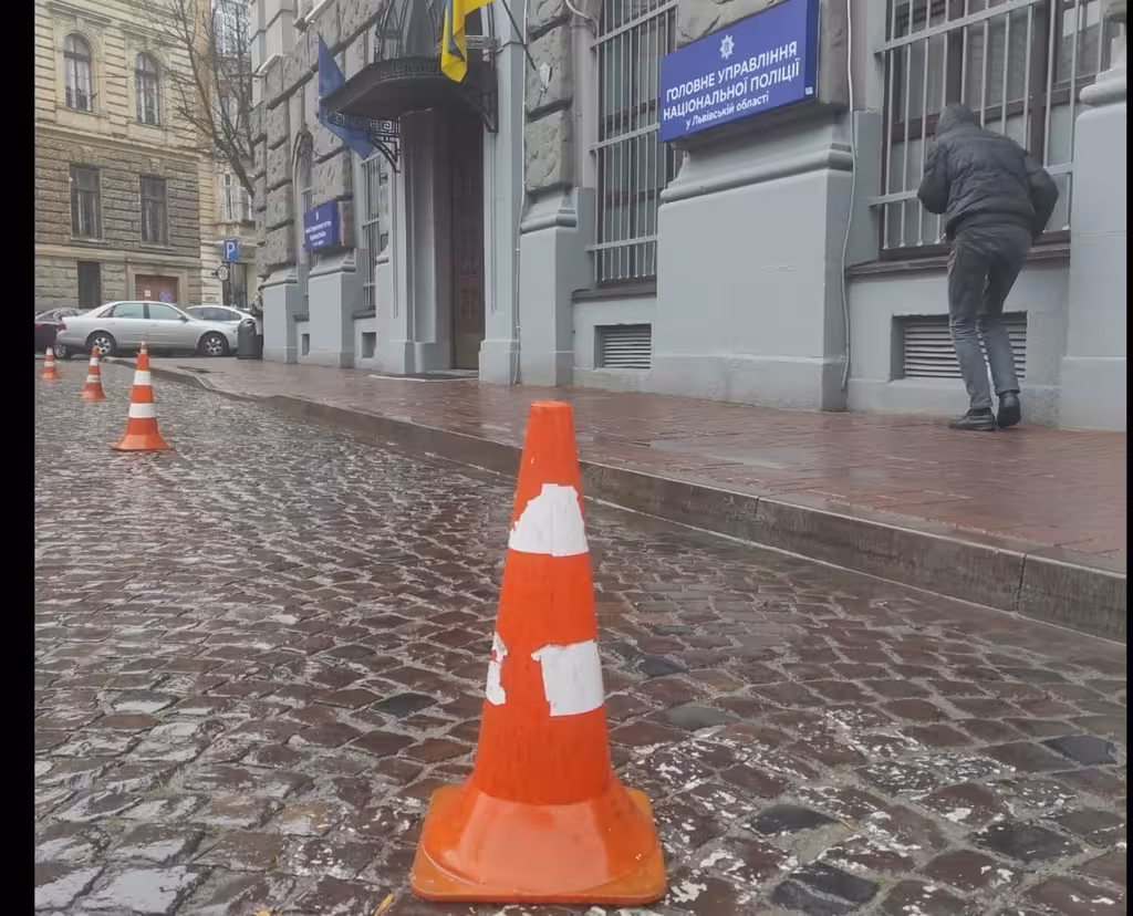 Львів’янин шукає власників конусів, які встановили на проїжджій частині біля ГУНП (ВІДЕО)