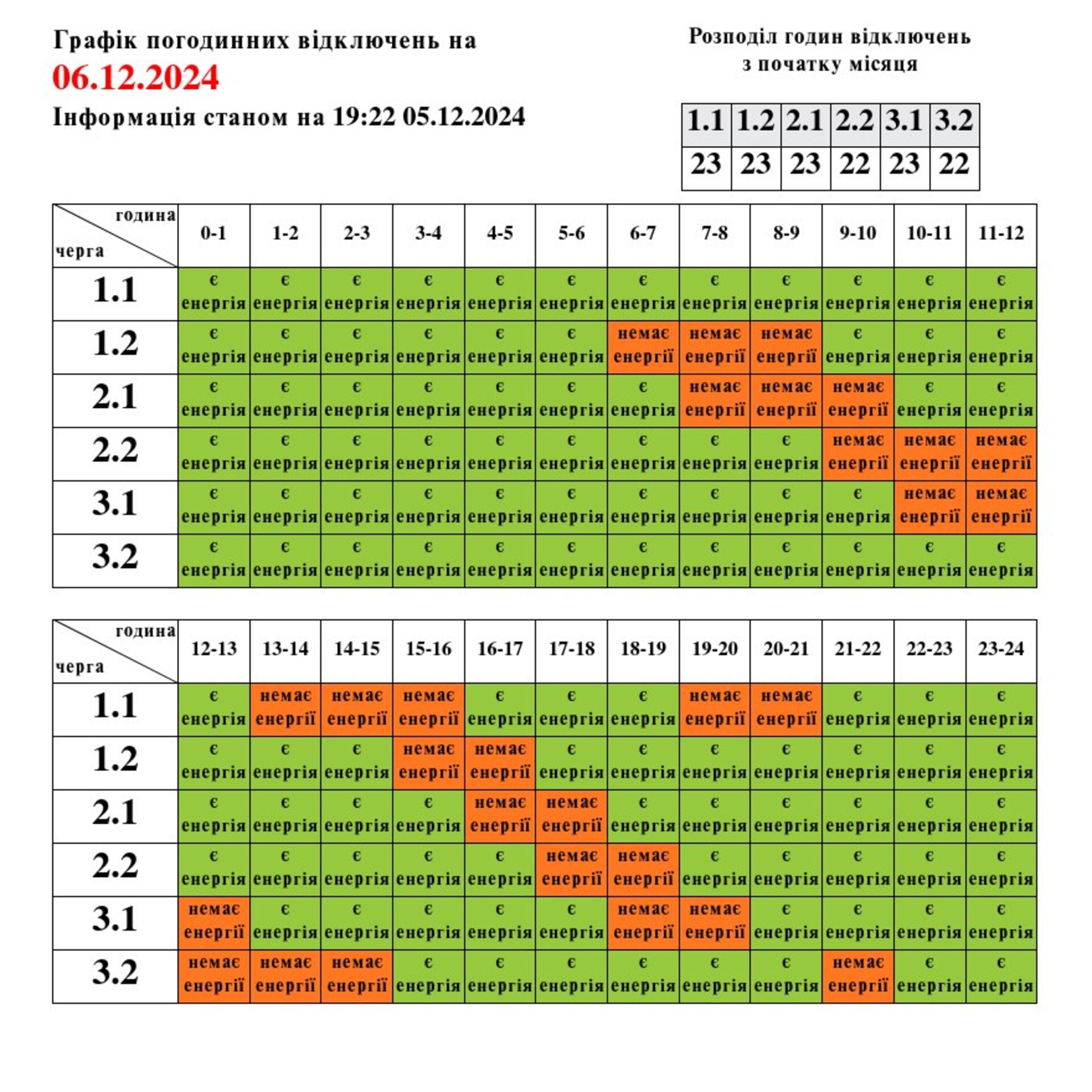 Завтра, 6 грудня, на Львівщині протягом доби мешканцям області, залежно від групи, електроенергію вимикатимуть на 4-5 годин. Графік оприлюднила пресслужба “Львівобленерго” у своєму Telegram-каналі.