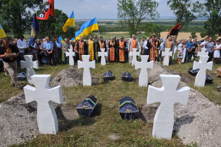 Під час вшанування перепоховали останки 29 українських дивізійників, знайдені під час пошукових робіт.