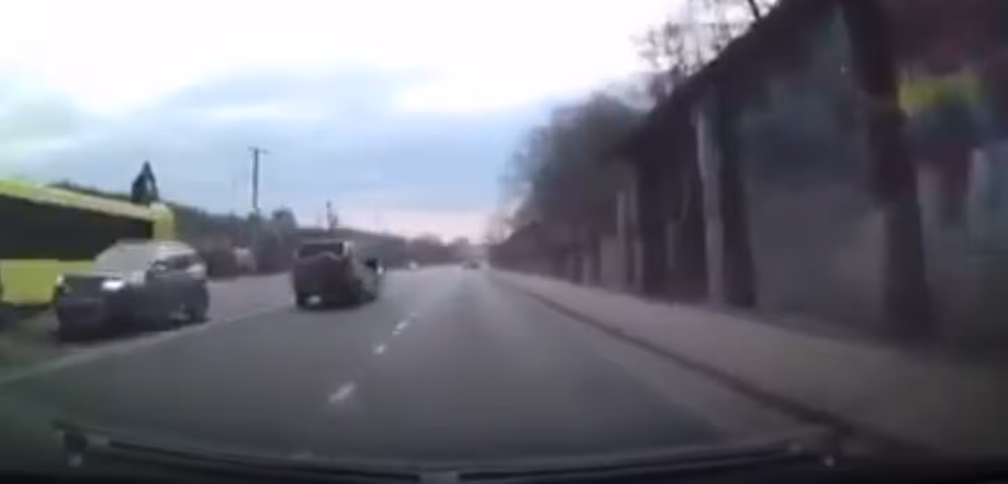 На відео потрапив також і сам момент зіткнення. Як видно з відео, позашляховик врізався у легковик «ВАЗ», який зупинився на дорозі, маючи намір повернути.