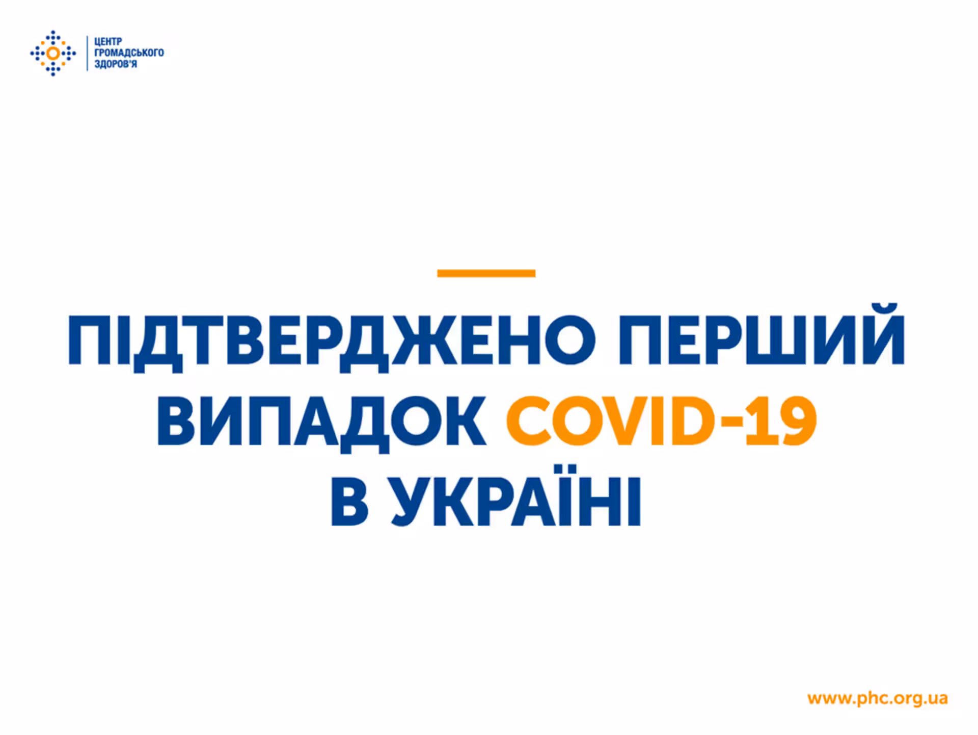 За дослідженнями вірусологічної референс-лабораторії Центру громадського здоров’я України підтверджено перший випадок COVID-2019 в Україні. Про це інформує Центр громадського здоров’я України.
