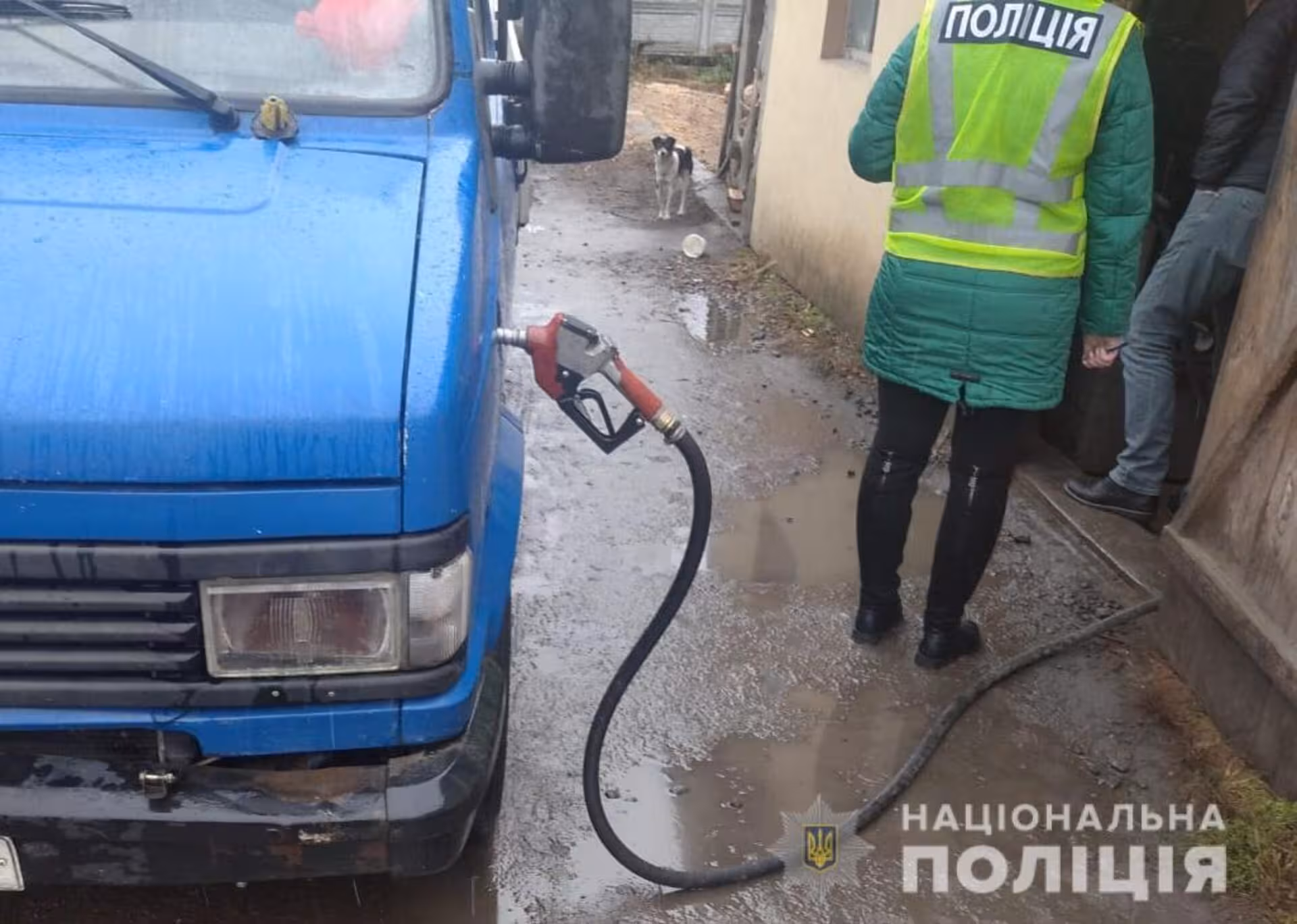 Поліцейські задокументували факт заправки автомобіля з пересувної колонки. Також під час огляду місця події поліцейські виявили та вилучили 12 металевих бочок ємністю 200 літрів та 5 пластмасових контейнерів ємністю 1000 літрів з паливно-мастильними матеріалами. Усього вилучено 4240 літрів дизпалива.