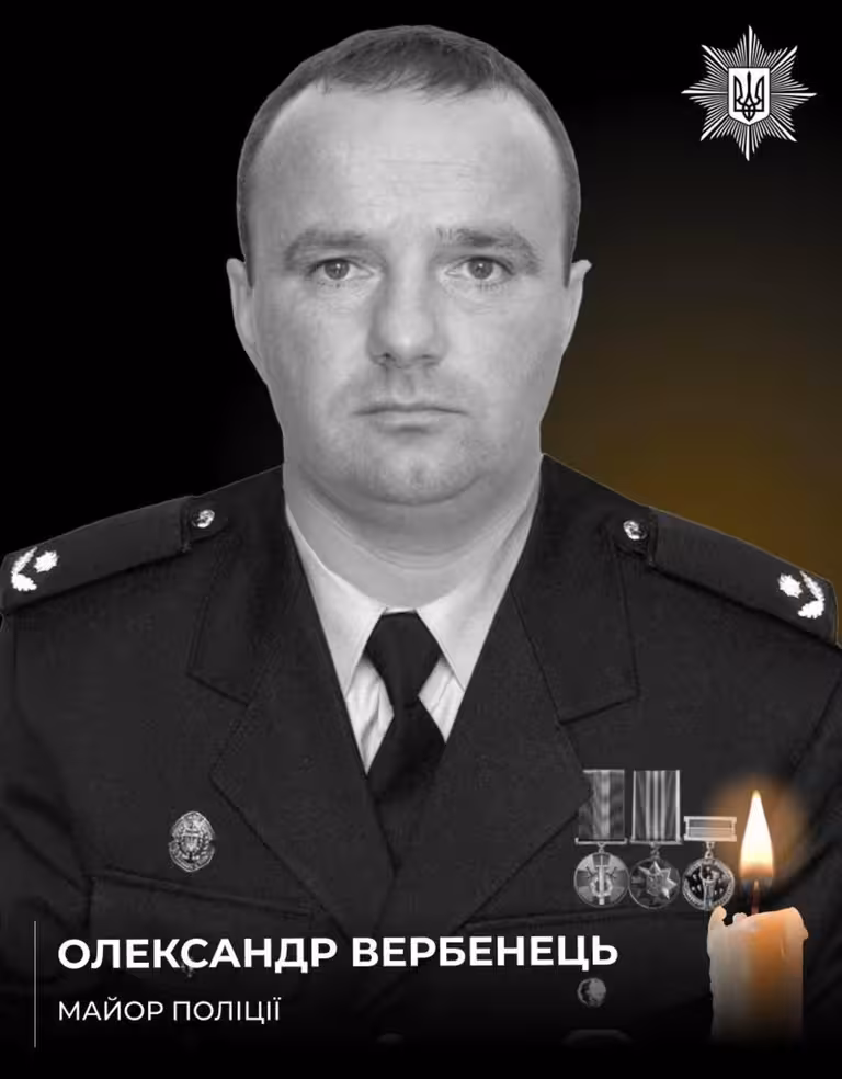 «Майор поліції Олександр Вербенець у складі підрозділу виконував бойові та спеціальні завдання на одному з найнебезпечніших напрямків. 26 березня ворожий дрон уразив позиції наших захисників у Краматорському районі. Поранення виявилися несумісними з життям. Тіло Олександра з поля бою евакуювали побратими», — йдеться в повідомленні.