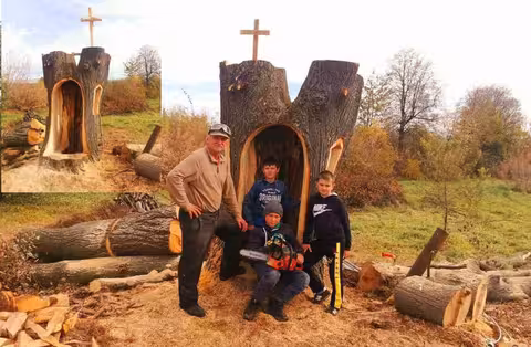«Колись на цьому місці був хрест. І, напевне, нам допомагають з неба, що всередині дерева виявилась пустота», — розповідає староста.