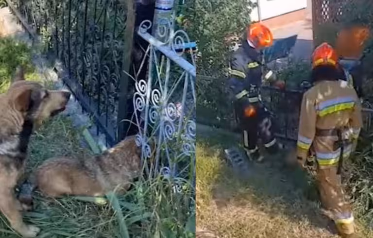 Собака застряг між прутами металевого паркану й самостійно вибратися вже не міг