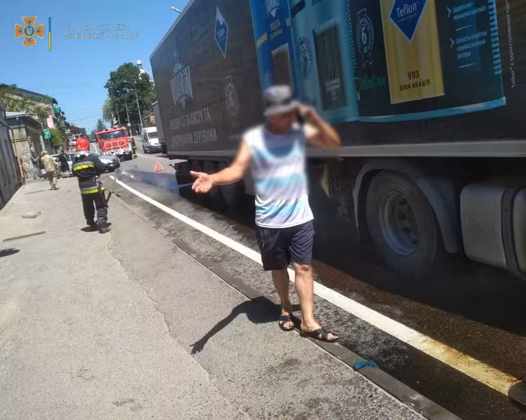 На Львівщині під час ДТП стався витік палива з вантажівки на дорожнє покриття (ФОТО)