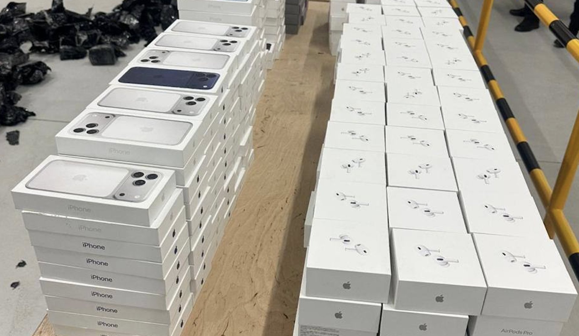 Під підлогою буса було заховано 829 одиниць техніки Apple. Зокрема, 501 телефон Apple. Здебільшого серед них iPhone 17 Pro, 16 Pro Max, 16 Pro Max.