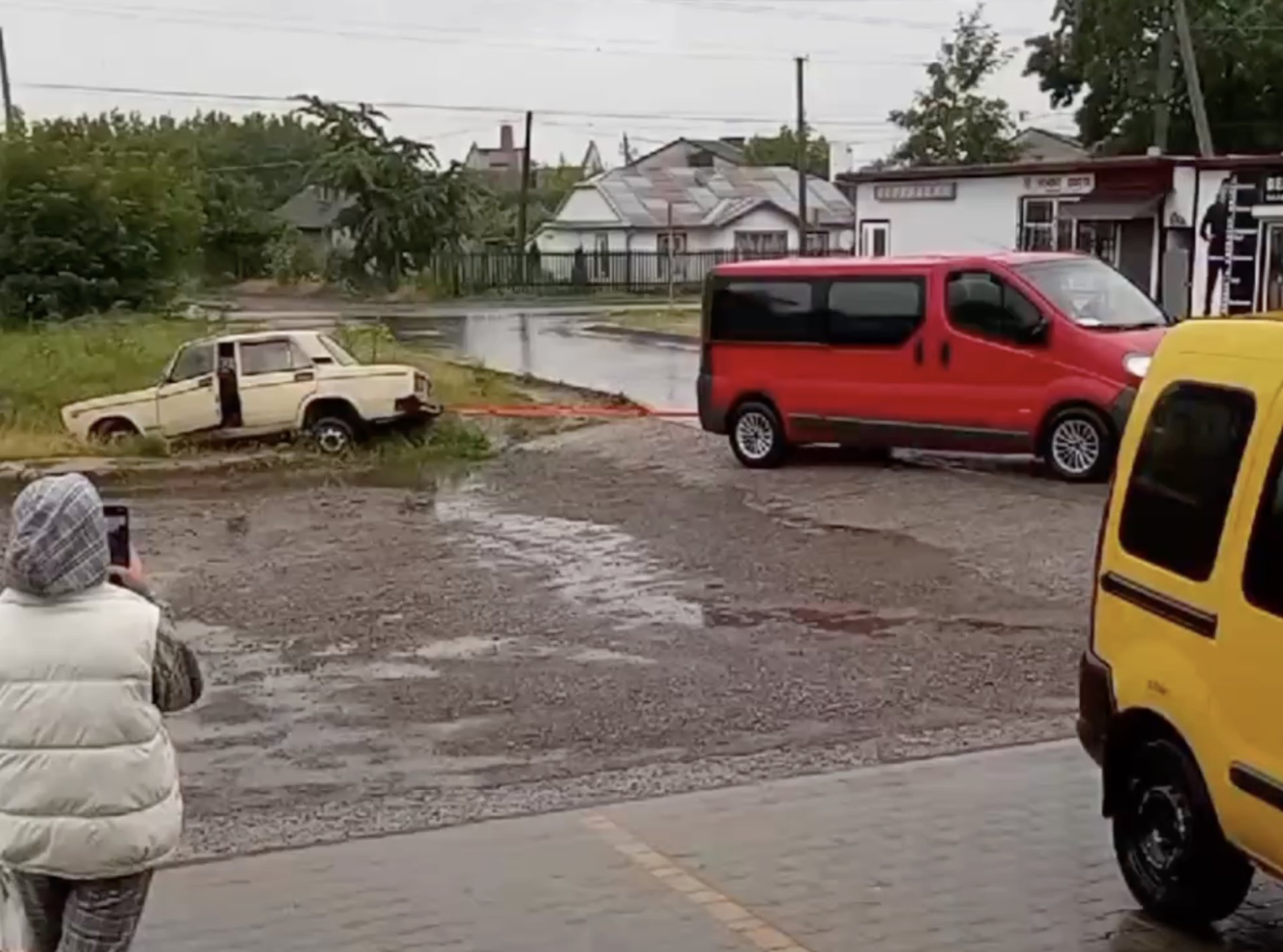 Водій, який приїхав на допомогу, ймовірно, не розрахував дистанцію або швидкість під час маневру. В результаті ВАЗ, який витягали з кювету, вдарився об інший припаркований автомобіль.