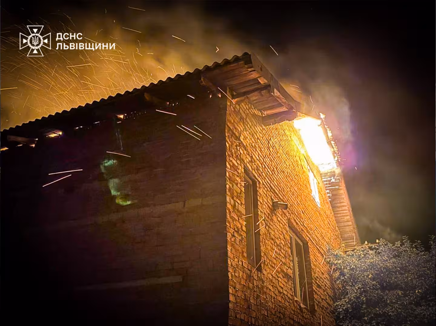 До місця події прибули вогнеборці з м. Стрий та м. Моршин. На момент їхнього прибуття дах будівлі був охоплений вогнем на всій площі.