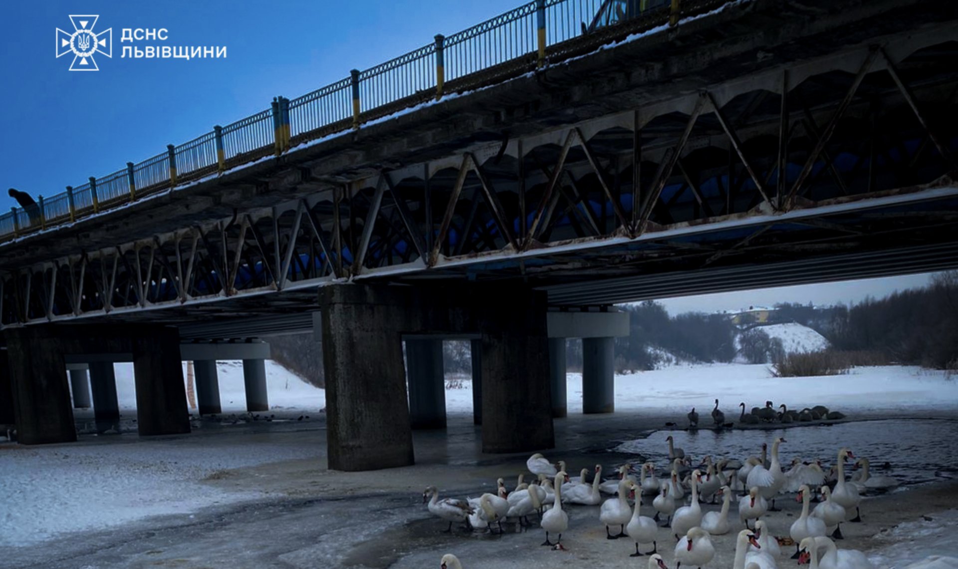 Жінка разом із дитиною прийшла до річки, щоб погодувати лебедів. У якийсь момент вона провалилася під тонку кригу. Дитина намагалася підбігти до матері, однак жінка, яка проходила мостом, вчасно зреагувала - почала голосно кричати, щоб дитина не підходила до небезпечного місця.