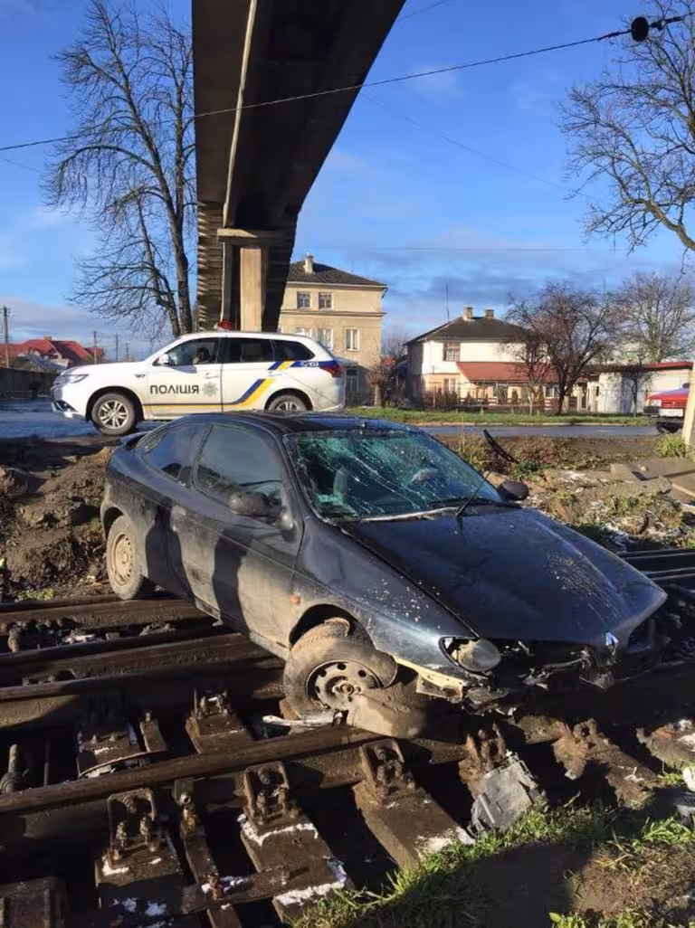 На Львівщині водій автомобіля, який опинився на залізничній колії, втік з місця ДТП (ФОТО)
