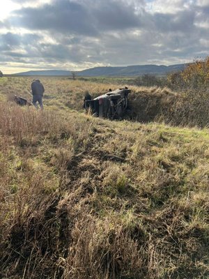 Побачивши прикордонників, водій авто пришвидшив рух та, не впоравшись з керуванням, перевернувся в кювет.