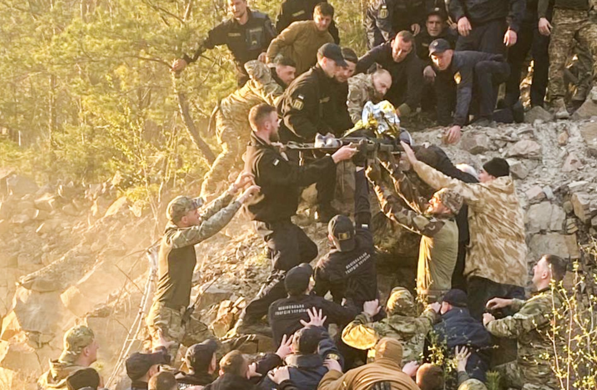 Через круті схили використати спецтехніку було неможливо, тому учасники пошуків утворили живий ланцюг та обережно спустили та передали медикам.