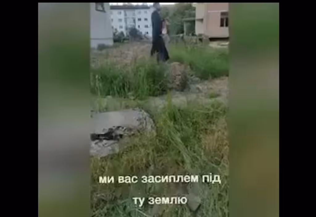 «Поруч будівлі знаходиться церква, яку побудували впродовж року! Та як виявляється їм бракує території та частину подвір’я хочуть забрати собі! Щастя, що онука здогадалися ввімкнути камеру, та непомітно відзняла ці кадри. На відео чітко видно, що жінка забороняє висипати землю та території яку їй дала влада, на що отець грубо відповідає:«Що її землею засипить, та ще многая літа заспіває». Наносить тілесні побої, які зафіксовані, та говорить про те, що він дуже злий! Чи варта ця людина носити статус Богослужителя? Та чи почує влада врешті решт жінку, та надасть усі документи на землю яка по праву належить її сім’ї?» — йдеться у дописі.