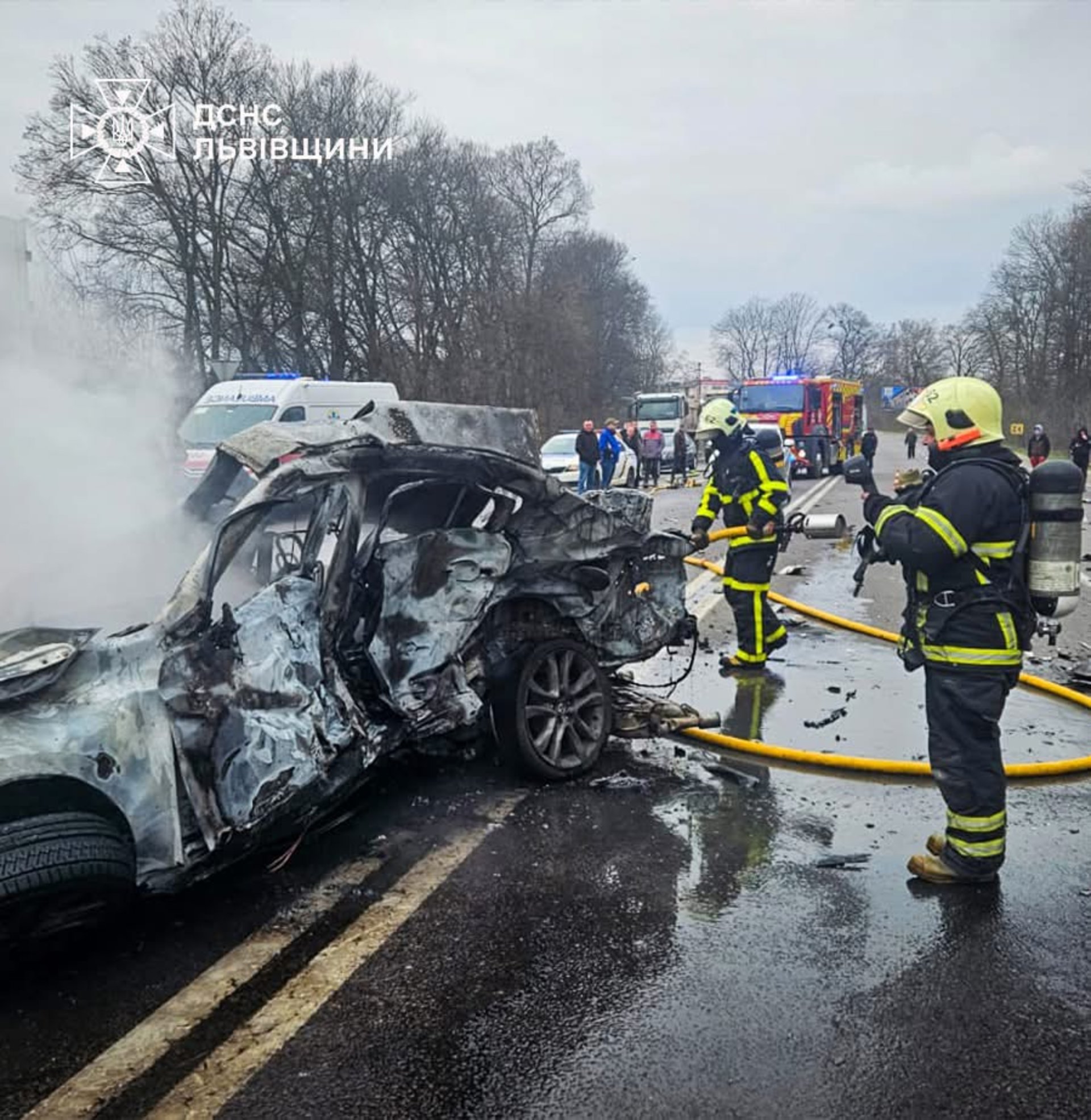 Сьогодні, 19 березня, о 07:59 рятувальники отримали повідомлення про дорожньо-транспортну пригоду за участю кількох автомобілів і загоряння транспортного засобу на автодорозі Київ-Чоп поблизу м. Дубляни. Про це інформує ДСНС Львівщини.
