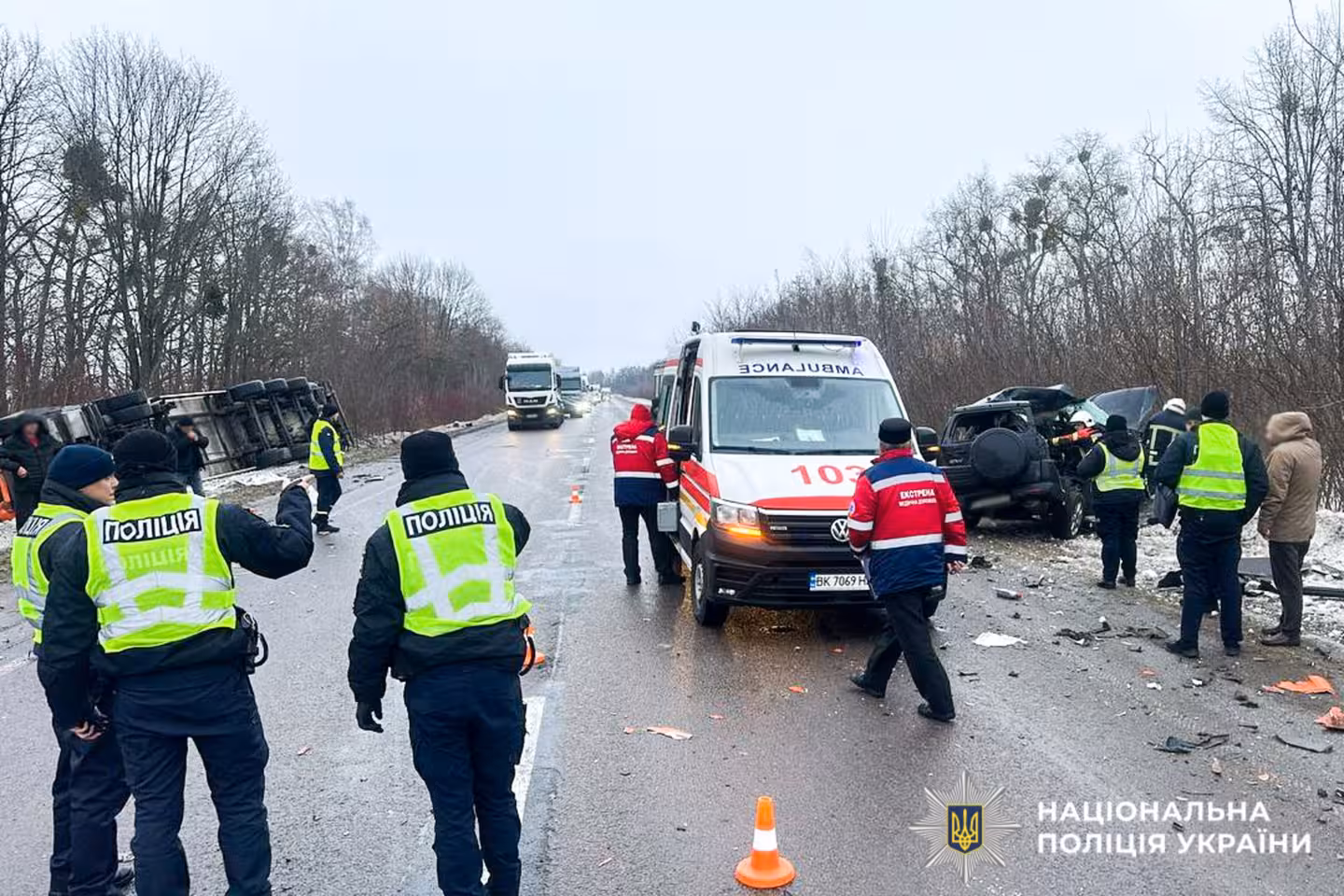 На трасі «Київ -Чоп» у Рівненській області сталася смертельна ДТП, на місці працюють поліцейські та рятувальники