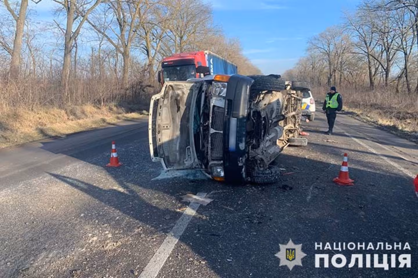 Водійка автомобіля Volkswagen Tiguan, рухаючись в напрямку Тернополя, допустила зіткнення з Volkswagen LT 35. У результаті удару бус перекинувся, а позашляховик продовжив рух та врізався ще й в Volkswagen ID.4.