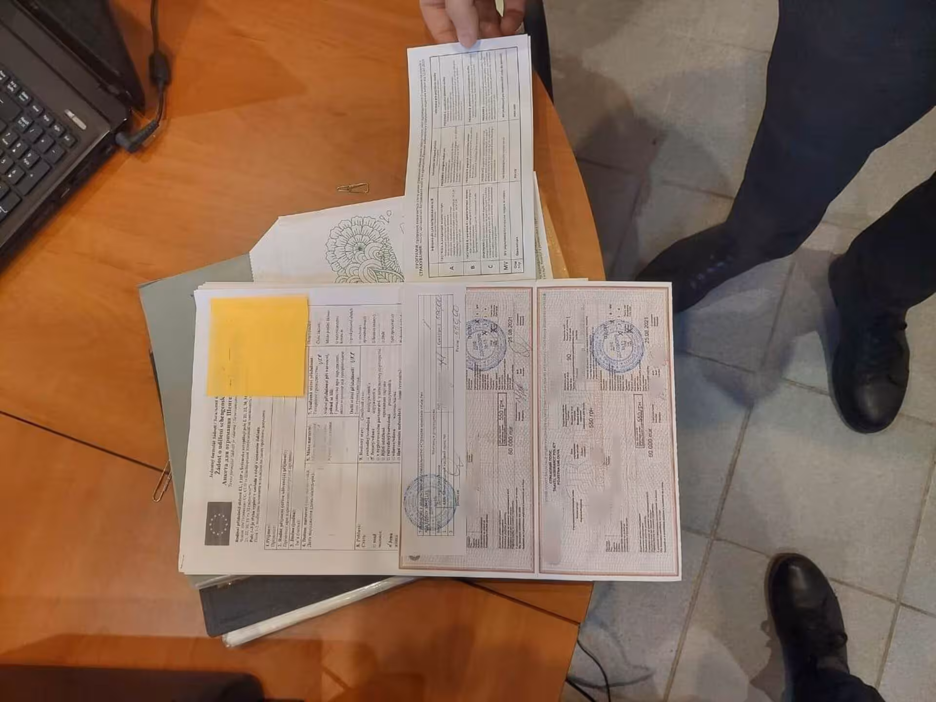 Оперативники провели 7 обшуків у транспортних засобах, а також за місцями проживання та роботи фігурантів. У ході перевірки було виявлено та вилучено комп’ютерну техніку, на якій містилися бланки та міжнародні сертифікати про вакцинацію українського та словацького зразків із згенерованими QR-кодами, бланки негативних ПЛР-тестів, готові для внесення змін з подальшим друком, мобільні телефони, жорсткі диски, печатки, незаповнені аркуші з проставленими печатками та близько 1000 незаповнених номерних страхових бланків з відбитками печаток та підписами.