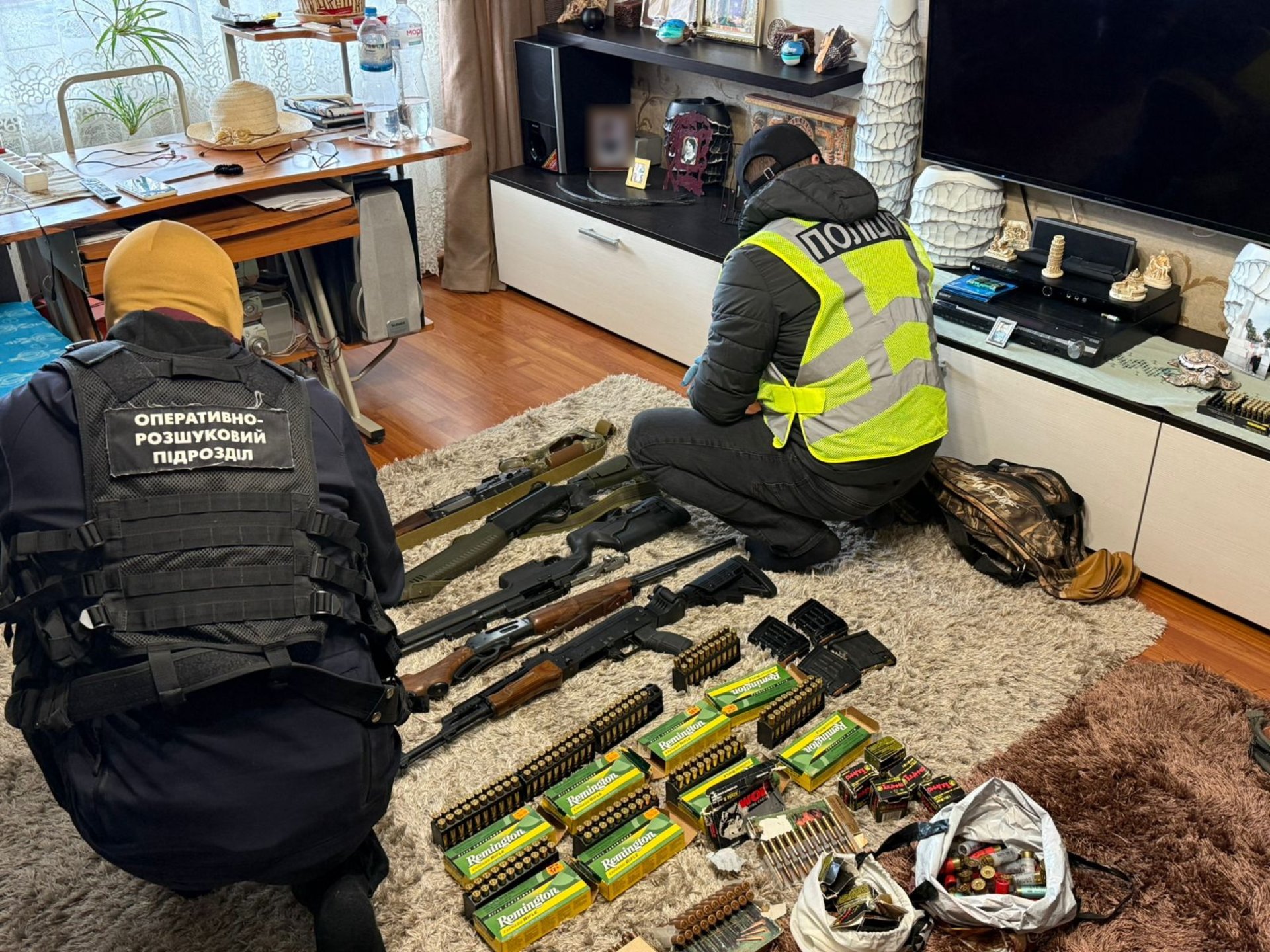 Була проведена низка обшуків за місцями проживання фігурантів кримінального провадження. За результатами обшуків виявлено та вилучено автомат АКМС калібру 7,62 мм., снайперська гвинтівка СВД, гвинтівка Мосіна, карабін Вінчестер, пристрій для відстрілу гумових куль Escort Magnum та кілька сотень набоїв до вказаної зброї. Крім цього вилучені мобільні телефони та автомобіль, які використовувалися в протиправній діяльності.