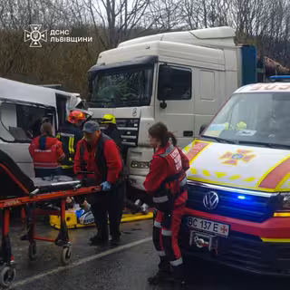 Дорожньо-транспортна пригода сталася у четвер, 9 квітня, о 16:32. На трасі в Золочівському районі зіткнулися мікроавтобус Renault Master та вантажівка DAF. Про це повідомили у ДСНС.