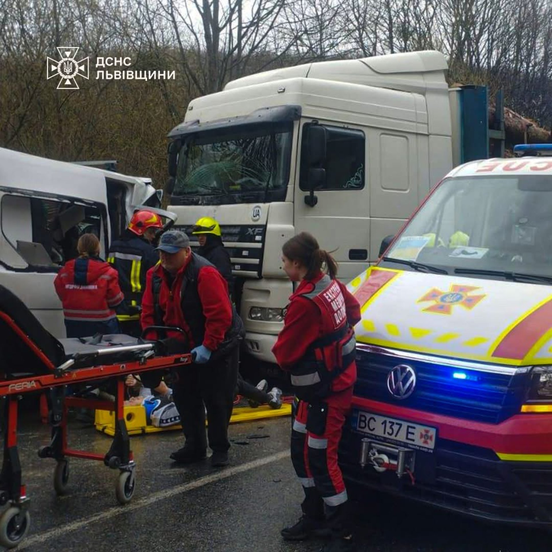 На Львівщині рятувальники деблокували травмованих із понівеченого в ДТП мікроавтобуса