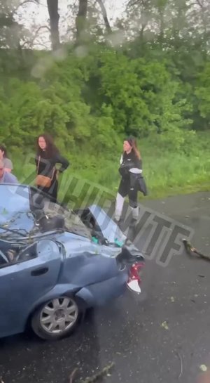 На них видно серйозно пошкоджену автівку, на яку обвалився стовбур дерева. Про стан водія та пасажирів наразі інформації немає.