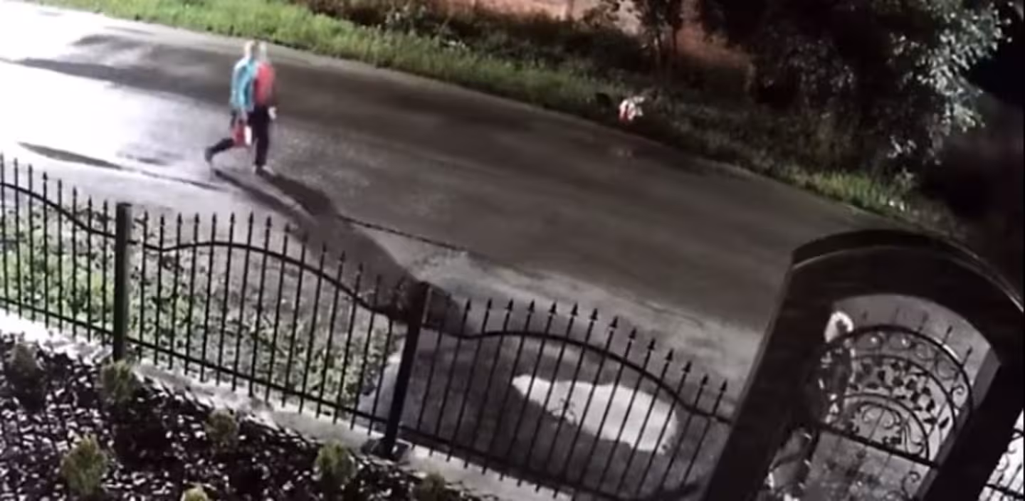 На відео можна побачити, що чоловік разом з дитиною перелазить через паркан, вириває насадження і передає їх жінці, яка, в свою чергу, теж витягає із землі рослини до яких може дотягнутися.