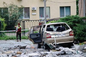 - уламки впали біля автозаправної станції, пошкоджено автомобіль;