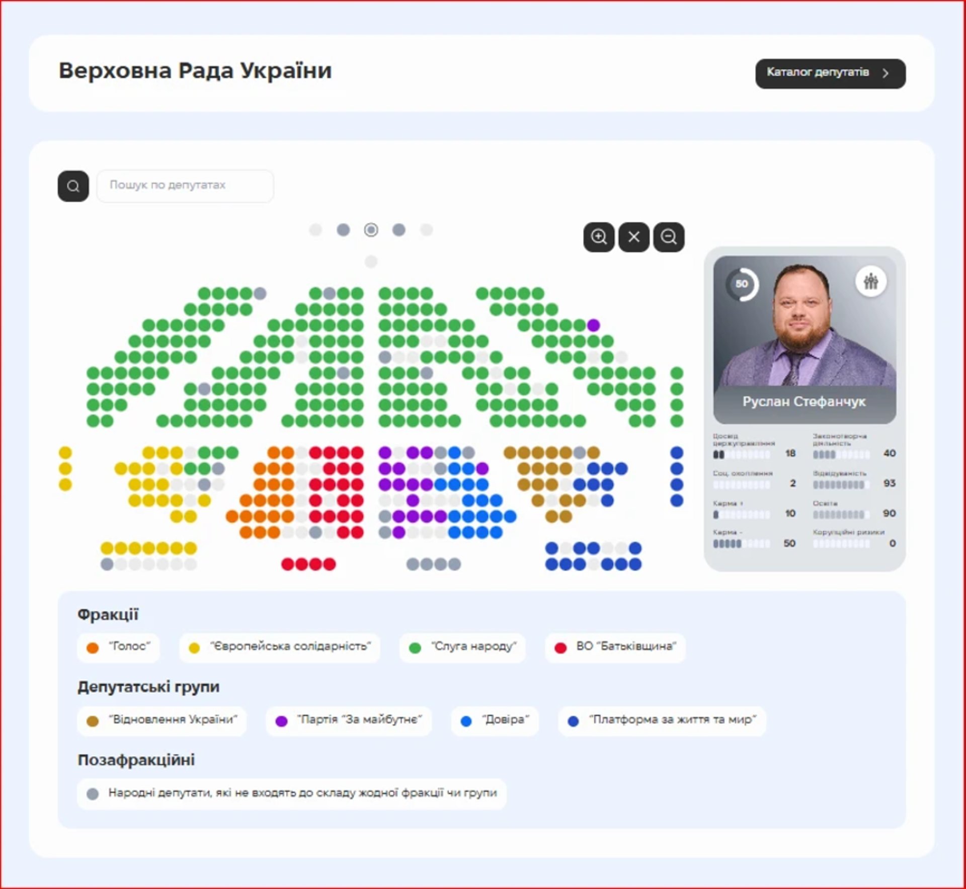 На ресурсі зібрані досьє депутатів Верховної Ради та органів місцевого самоврядування. База даних оновлюється щодня, забезпечуючи користувачів найсвіжішою інформацією. Тут знаходяться відомості про тих, кого громадяни тимчасово обрали втілювати свої ідеї та бачення успішної незалежної України.