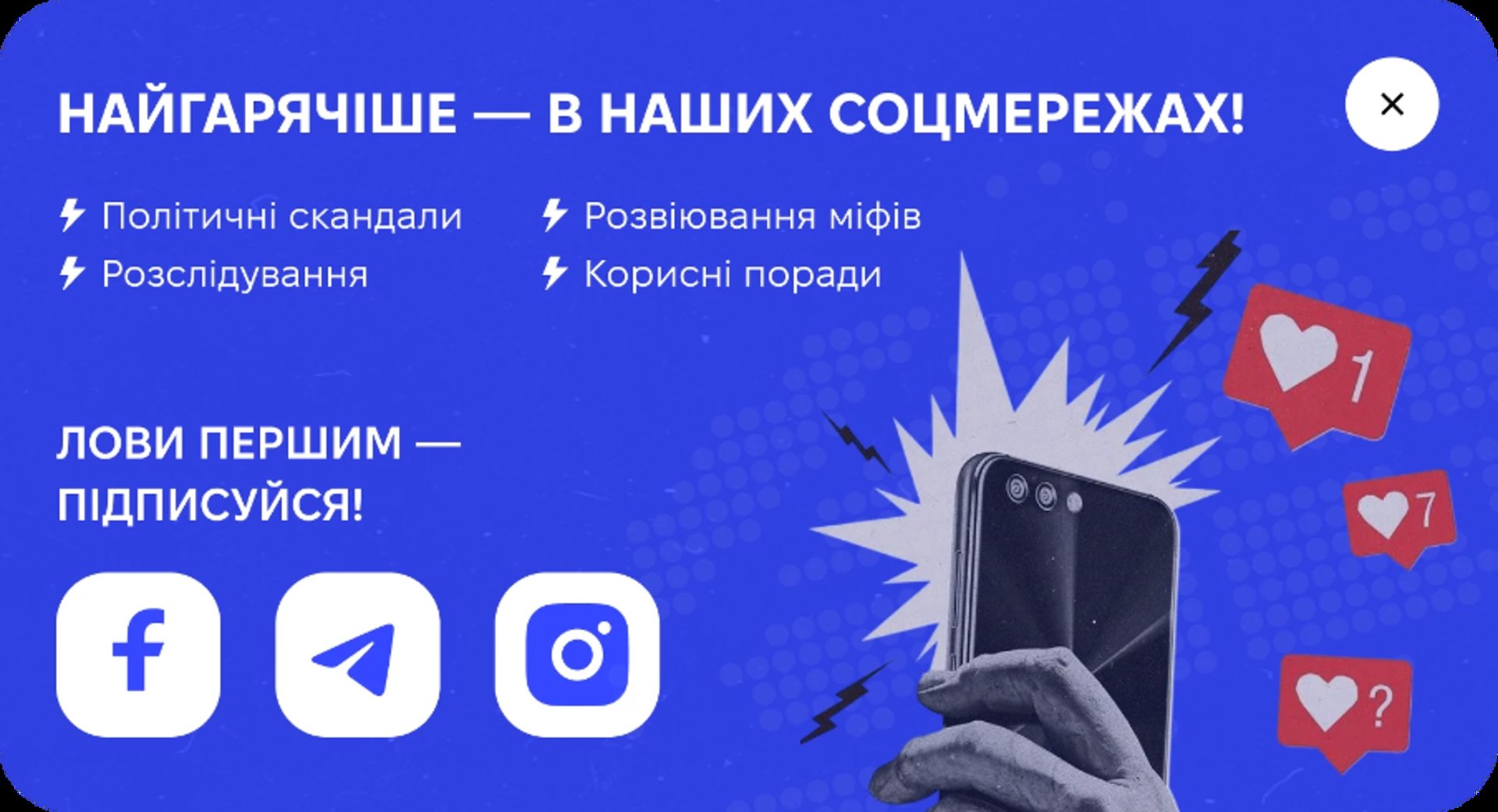 Матеріали подаються з фактами та джерелами, але без зайвої термінології — так, щоб кожен зміг зануритися в суспільно-політичне життя не через обов’язок, а через інтерес.