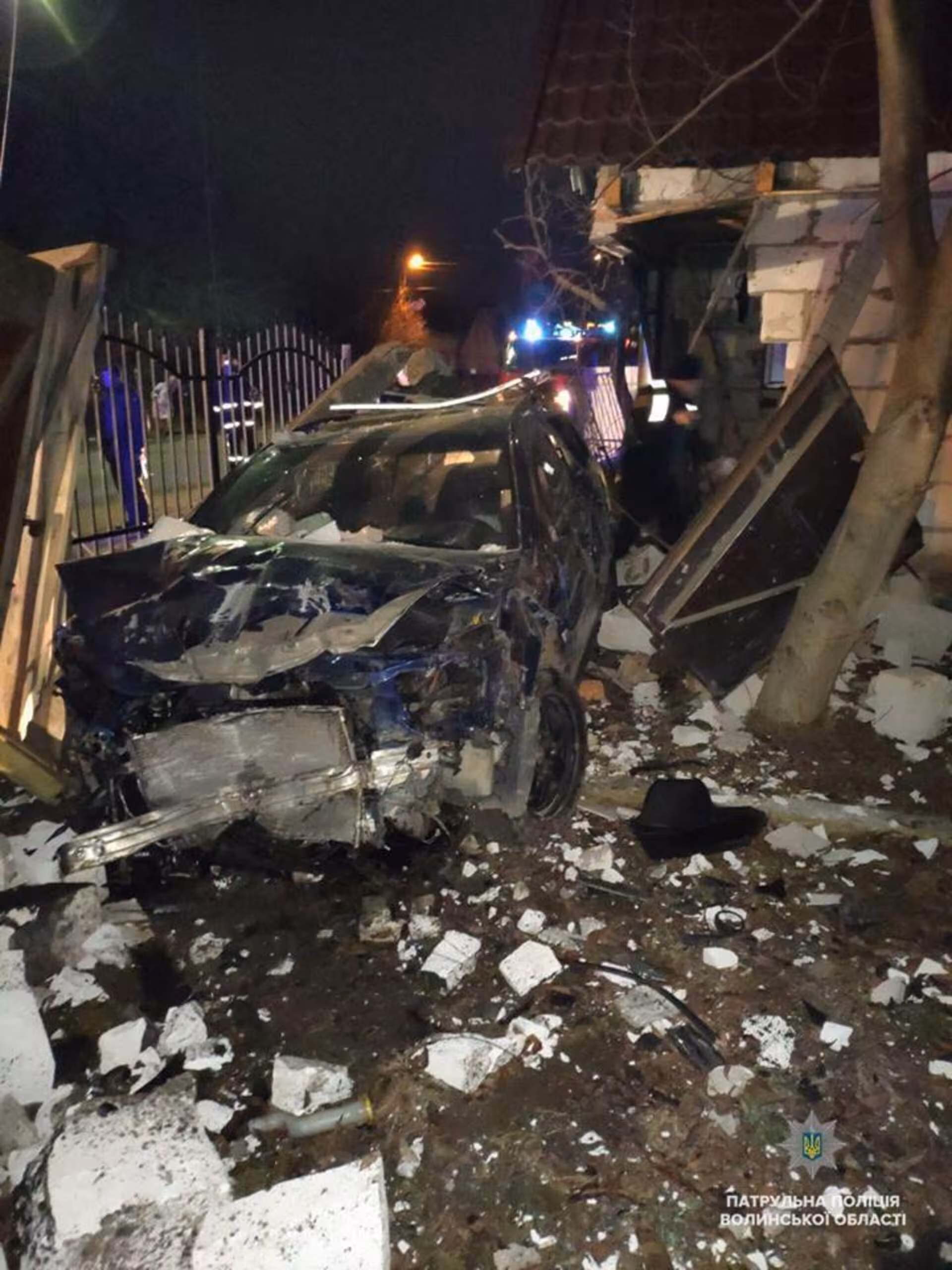 П’яний водій розгромив паркан, зніс опору й "влучив" у гараж: луцьке "автородео" (фото, відео)