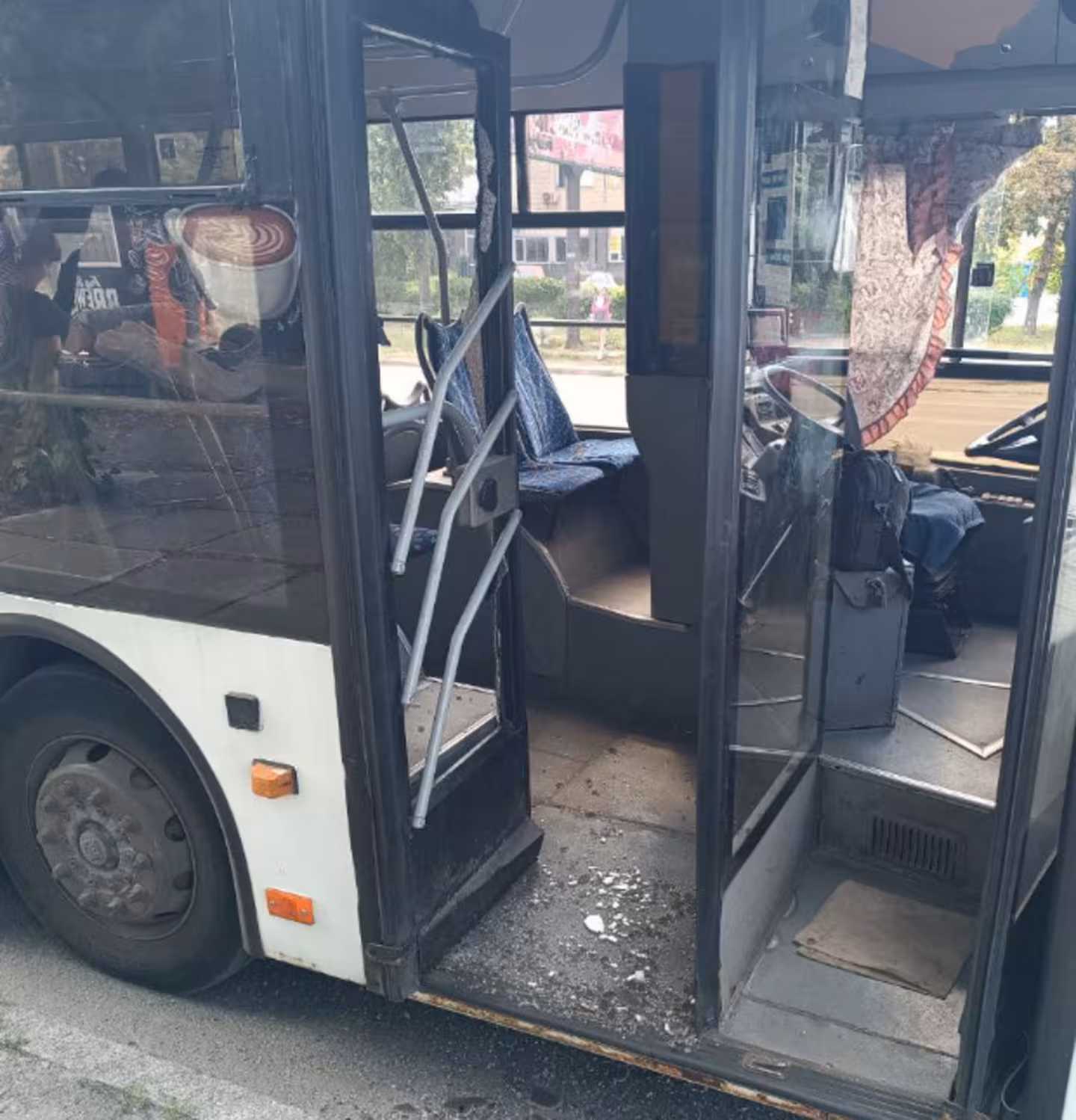 Пасажир-безбілетник втікаючи від контролерів вибив скло у дверях тролейбуса (ФОТО)