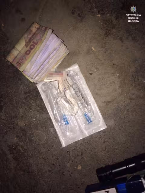 Інспектори почали перевіряти прилеглі вулиці та в одному з дворів неподалік від місця події виявили підозрілих осіб. Чоловіки побачили патрульних, розвернулися та пришвидшили хід. Інспектори зупинили осіб та попросили пред'явити документи. Чоловіки сказали що не мають їх з собою. Патрульні провели поверхневу перевірку та виявили документи, які були викрадені в заявника, грошові кошти у сумі 997 гривень, два мобільні телефони, шприци, таблетку «Субітекс», краплі для очей та ліхтарик. На місце події викликали слідчо-оперативну групу. Заявник написав заяву, а затриманих доставили до Сихівського відділу поліції.