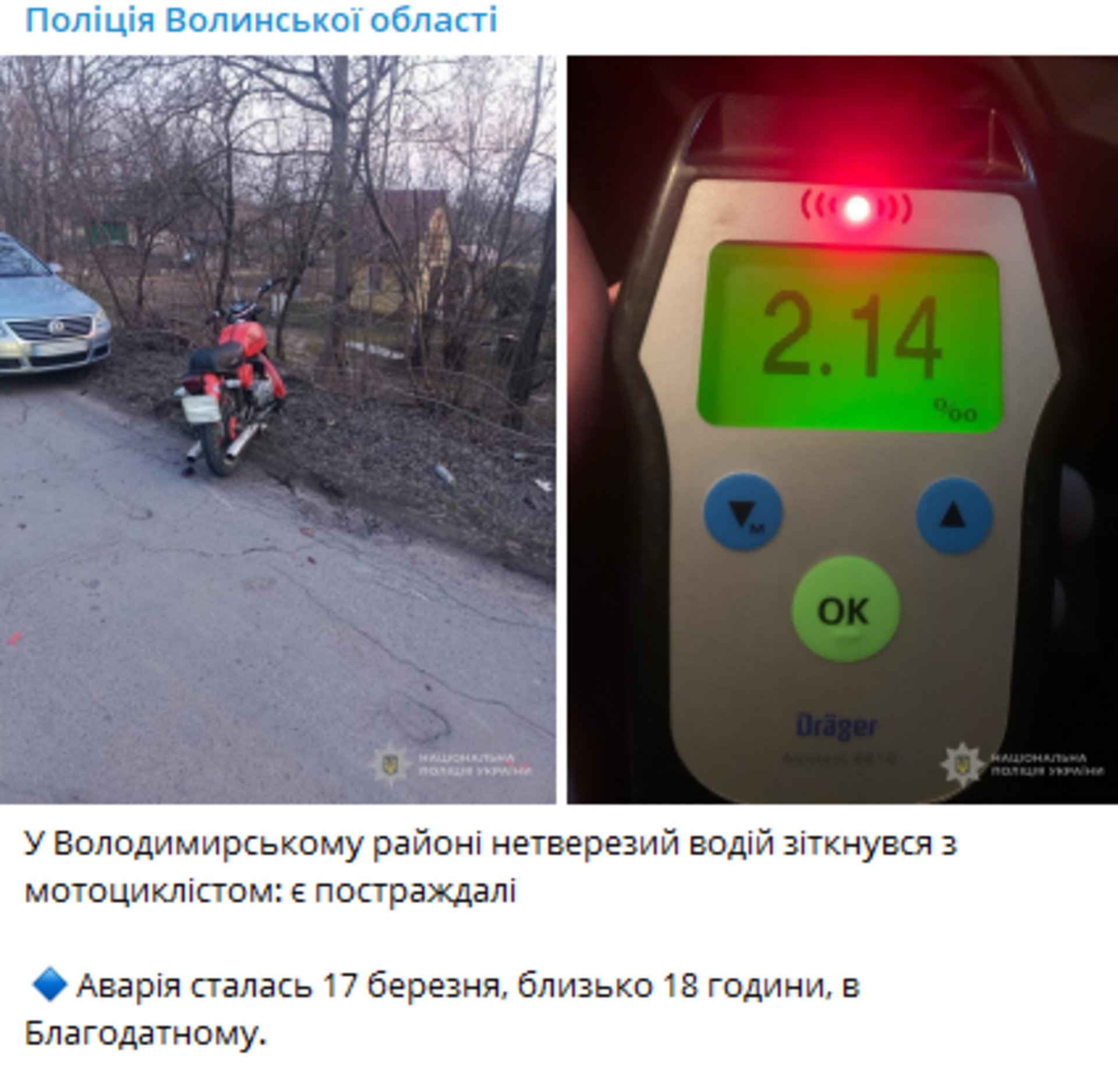 П’яний водій легковика збив мотоцикліста з дитиною на Волині