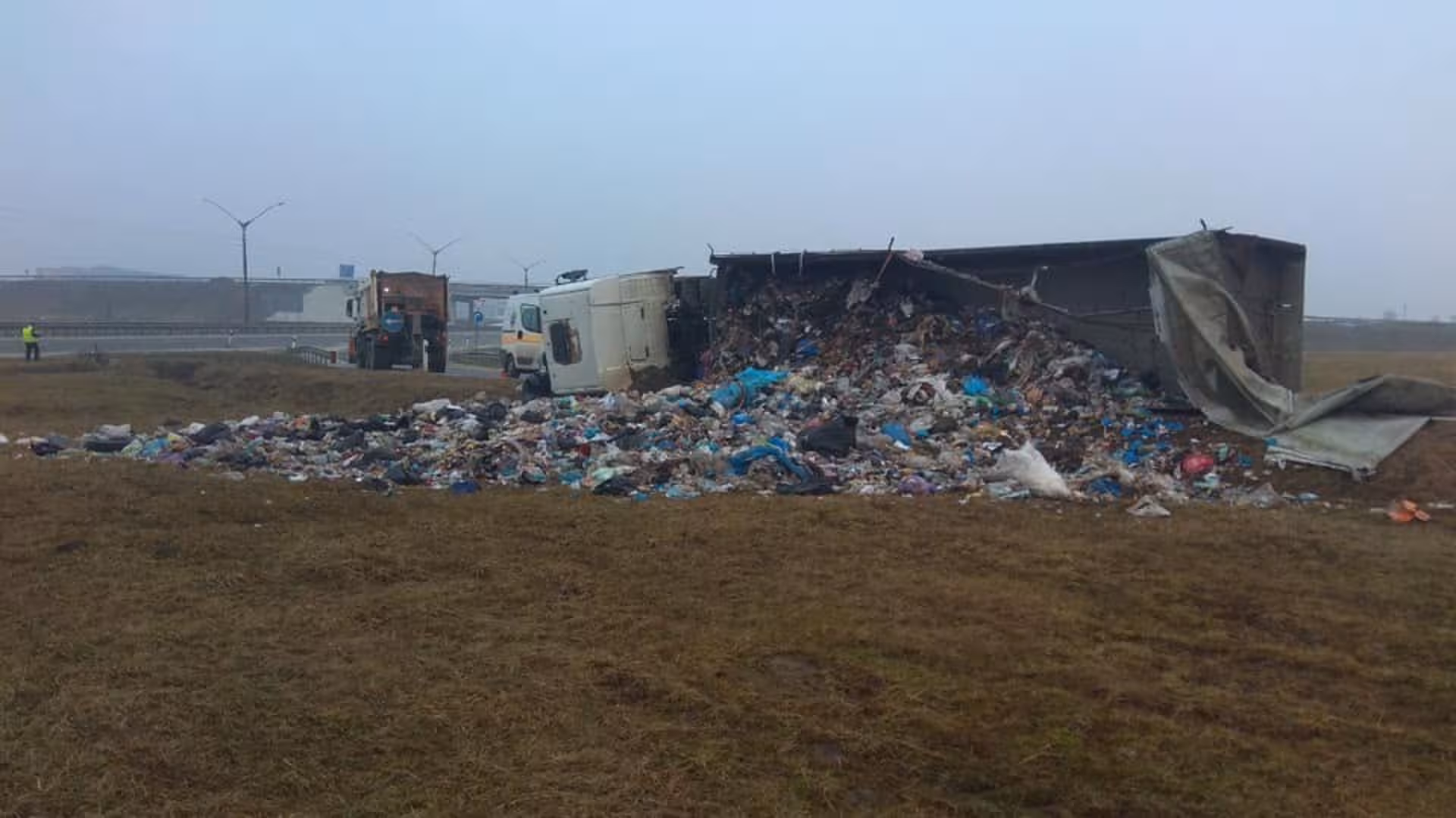 Поблизу Львова перекинулася вантажівка зі сміттям (фото, відео)