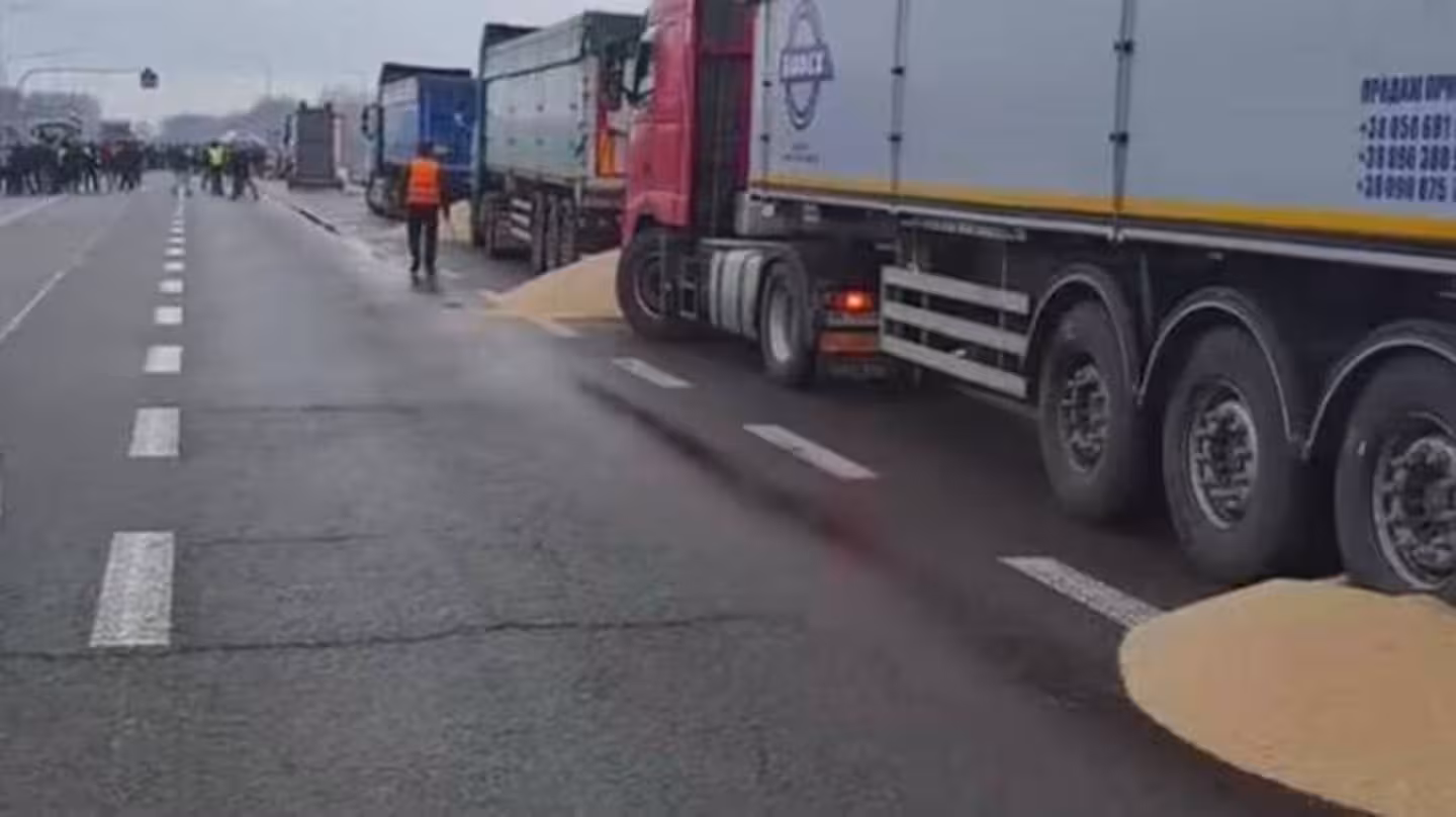 Вчора група протестувальників висипала зерно з українських вантажівок